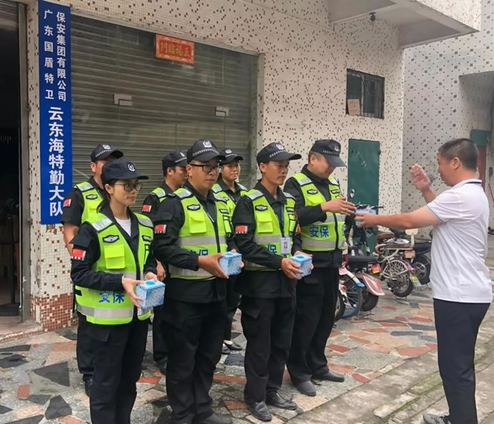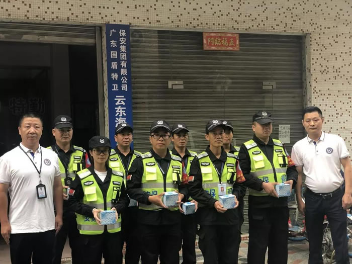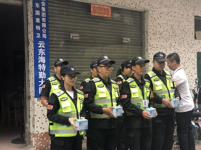 2019年4月17日,國(guó)盾特衛(wèi)保安服務(wù)公司工會(huì)主席鄭紅戰(zhàn)與委員鄧淑芬受三水區(qū)云東海街道工會(huì)委托,前往云東海特勤大隊(duì)現(xiàn)場(chǎng)慰問(wèn)優(yōu)秀新隊(duì)員, 向一線(xiàn)隊(duì)員致以誠(chéng)摯問(wèn)候和祝福。