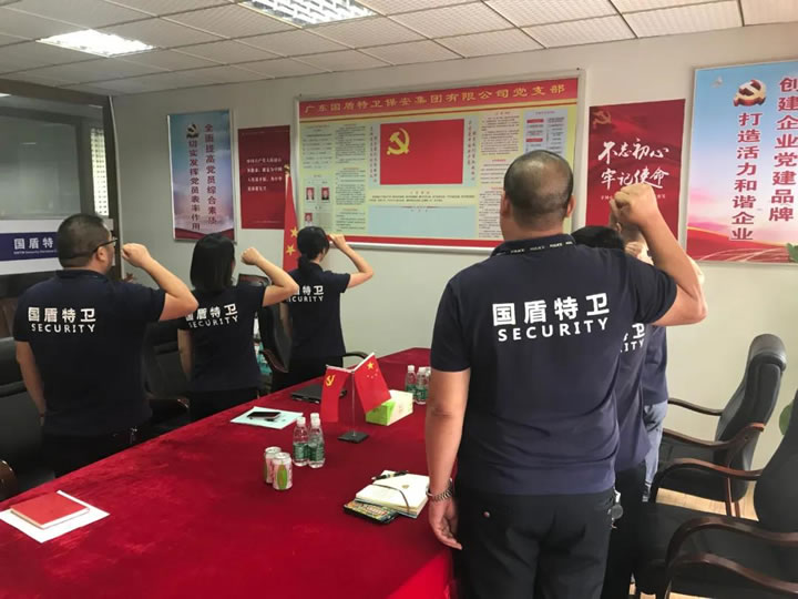 座談交流會上,全體黨員面對鮮艷的黨旗進行了莊嚴宣誓,重溫入黨誓詞,牢記初心使命,共同學習了黨的光輝歷程。 黨支部副書記鄭紅戰向與會人員介紹了近年來集團公司黨支部工作建設情況,在總結成效的同時,注重分析問題,查找不足,同時緊密結合今年兩會精神的學習貫徹,進一步明確工作方向。以黨建引領,以鞏固深化“不忘初心、牢記使命”主題教育為抓手,認真學習黨章、遵守黨紀,切實轉變作風,為安保事業高質量發展作出貢獻。