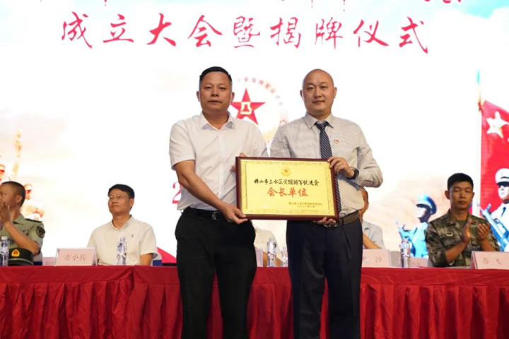成立大會結束后,陳維展少將、市退役軍人事務局副局長廖沙、副區長方小兵、區武裝部政委陳勇才、75752部隊政治工作部副主任蘇飛、愛促會會長、副會長、秘書長共同為三水區愛國擁軍促進會進行揭牌儀式,與會領導及愛促會全體成員一同參觀愛促會會址并合影留念。