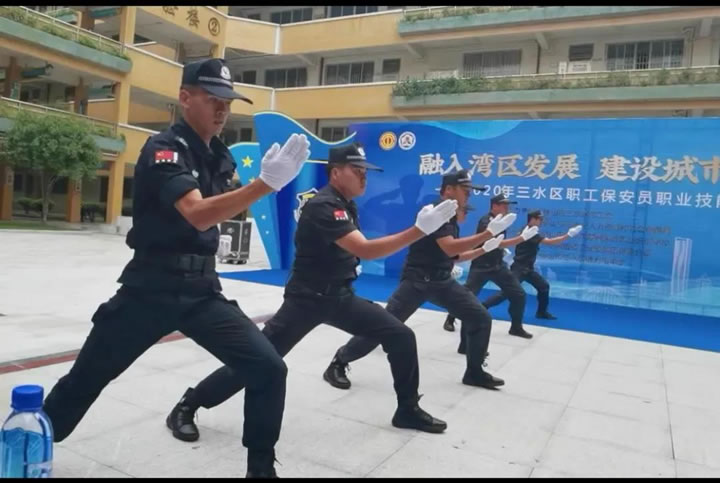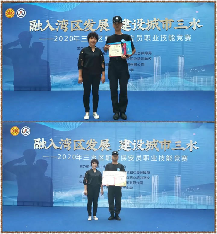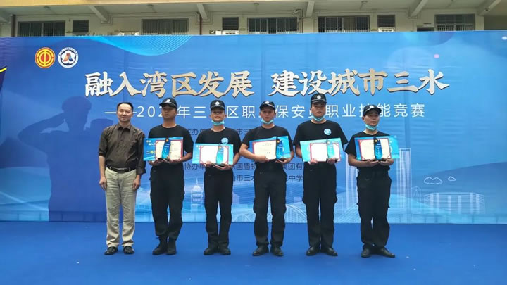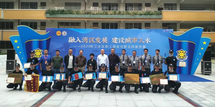 10月18日,三水區舉行 “融入灣區發展 建設城市三水” — 2020年三水區職工保安員職業技能競賽。該競賽由三水區總工會、三水區人力資源和社會保障局主辦,共有31名保安員選手參賽,我司代表參賽保安員楊海潮、李其昆、龍大標奪得團體獎第一名。