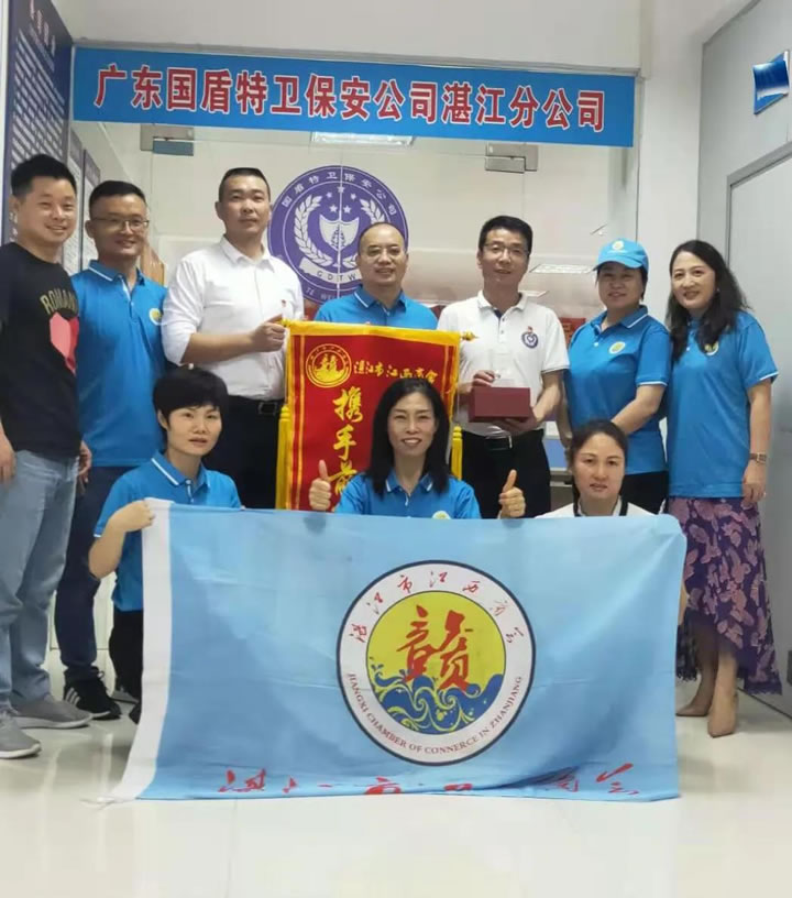 為進一步學習貫徹習近平總書記在廣東考察時的重要講話精神,弘揚墾荒精神,推動改革發展。根據商會年度工作安排,廣東國盾特衛保安集團有限公司湛江分公司特邀湛江市江西商會領導蒞臨公司指導工作。11月19日下午,由商會輪值會長吳明凡、秘書長洪艷、甘小琴牽頭組織會員等一行人到達廣東國盾特衛保安集團有限公司湛江分公司,湛江分公司黨支部書記、總經理楊仁岳、行政經理鄢小豐及辦公室全體員工對商會一行的到來表示熱烈歡迎,并組織召開座談會。