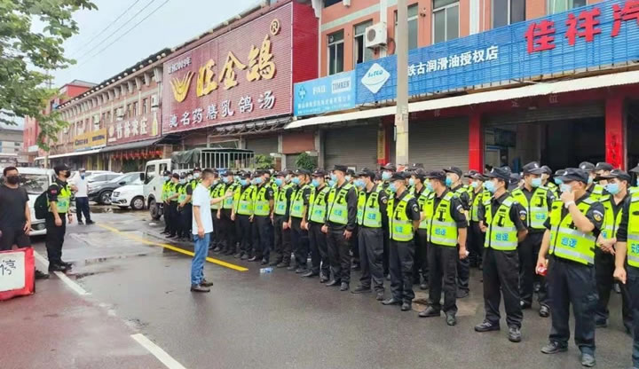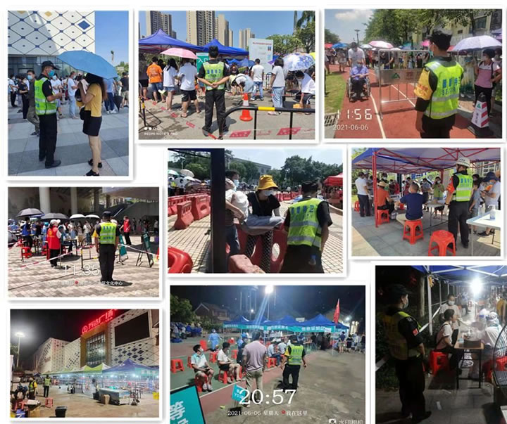 為了防止疫情大范圍擴(kuò)散,在烈日下、在夜幕下,在核酸檢驗(yàn)區(qū)、在隔離看護(hù)點(diǎn),處處都能看見國(guó)盾特衛(wèi)保安員默默忙碌的的身影,不分晝夜看護(hù)隔離居民禁止出行,引導(dǎo)居民做核酸檢測(cè)并維持秩序,為疫情貢獻(xiàn)力量。派駐到各點(diǎn)的保安員全力以赴配合上級(jí)政府部門,從場(chǎng)地布置、模擬演習(xí)到交通疏導(dǎo)、秩序維護(hù),順利圓滿完成了對(duì)南海大瀝鎮(zhèn)、三水各鎮(zhèn)街全員核酸檢測(cè)工作,獲得了相關(guān)政府部門領(lǐng)導(dǎo)的高度認(rèn)可。