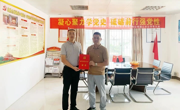 一分耕耘,一分收獲。7月5日上午,麻章區“兩新”組織黨委肖超林主任為湛江分公司黨支部書記楊仁岳同志頒發了“2021年麻章區優秀黨務工作者”榮譽證書。隨后肖主任與楊仁岳同志進行交流談心,肖主任在交談中肯定了湛江分公司黨建工作所取得的成績,并寄語囑咐湛江分公司黨支部一如既往的搞好黨建工作,不斷提升黨員的理論學習和政治修養,在工作中發揮黨員干部的先鋒模范作用,推進黨建工作再上新臺階。