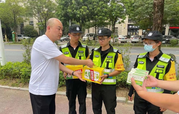 公司客戶單位執勤點多、線長、面廣,人員分散,為了搞好送清涼慰問活動,讓每位保安員親身感受公司關心關愛,集團公司黨支部副書記、工會主席、董事長助理鄭紅戰同志與各保安部經理加強溝通配合、統籌安排,確保慰問活動有序進行。為把好事辦實、實事辦好,此次“夏日送清涼”活動,把送清涼物資與送健康結合起來,發放防暑藥品,講解預防常識,提醒大家做好常態化的疫情防控。把送關愛與激發保安員愛崗敬業結合起來,引導大家積極做好客戶單位執勤巡查、門衛掃碼登記、消防安全檢查、應急處置等工作,進一步激發了保安員的責任感和使命感。