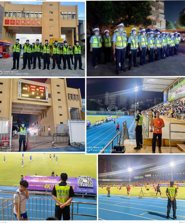 賽事舉行期間,由于觀眾人數較多,安保責任壓力大,我司管理人員提前部署謀劃,認真研究部署本次安保工作,根據現場勘察情況及主辦單位相關工作要求,結合對舉辦比賽整體的不穩定因素分析及相關安保工作建議,我司共派出100多人次安保人員及交通協管員,協助開展疫情防控、交通管制、維持現場秩序等工作,構成有效的聯防聯控機制,以良好的紀律作風和嚴謹負責的專業精神,為三水這一盛事圓滿舉辦保駕護航。