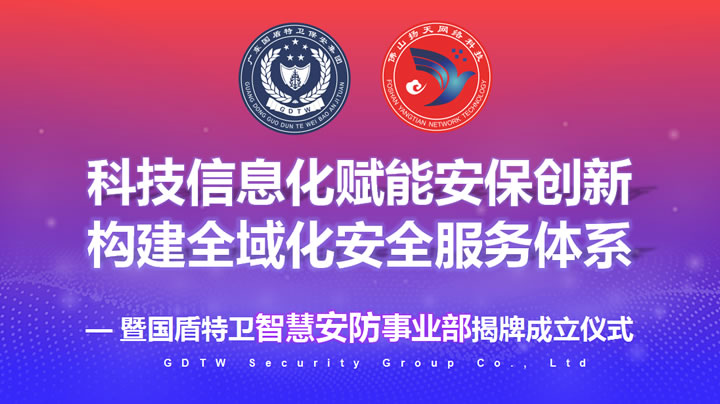面對(duì)當(dāng)前科技創(chuàng)新正加速推進(jìn)、融合發(fā)展,顛覆性的技術(shù)層出不窮的新情況、新特點(diǎn)、新趨勢(shì),并隨著互聯(lián)網(wǎng)新技術(shù)的廣泛應(yīng)用,將信息化融入安保服務(wù)將是時(shí)代之需。國(guó)盾特衛(wèi)保安集團(tuán)在鞏固傳統(tǒng)“人防”項(xiàng)目的同時(shí),把握機(jī)遇和挑戰(zhàn)與佛山揚(yáng)天網(wǎng)絡(luò)科技有限公司攜手共建國(guó)盾特衛(wèi)智慧安防事業(yè)部。4月6日上午,集團(tuán)公司董事長(zhǎng)夏學(xué)樹與揚(yáng)天網(wǎng)絡(luò)科技公司董事長(zhǎng)唐志楊為國(guó)盾特衛(wèi)智慧安防事業(yè)部成立舉行一個(gè)簡(jiǎn)單而隆重的揭牌儀式。