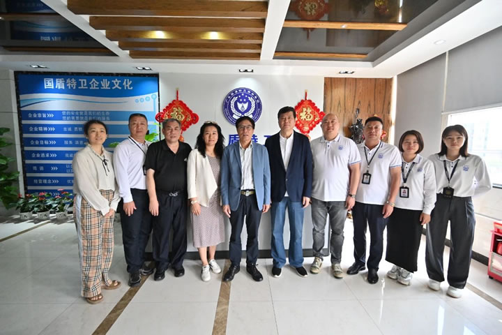 10月27日上午,廣東省保安協會會長鄭東、秘書長王克林會同前來深圳參加國際安保論壇的特邀演講嘉賓中國保安企業標桿單位—上海中保華安集團總裁孔憲明、戰略發展市場總監王紅霞,前往位于佛山市三水區的廣東省保安協會理事單位—廣東國盾特衛保安集團有限公司座談交流,介紹該集團的好經驗、好做法,并為廣東保安企業如何突破發展瓶頸,實現科技賦能,再創輝煌進行實地“診斷把脈”。