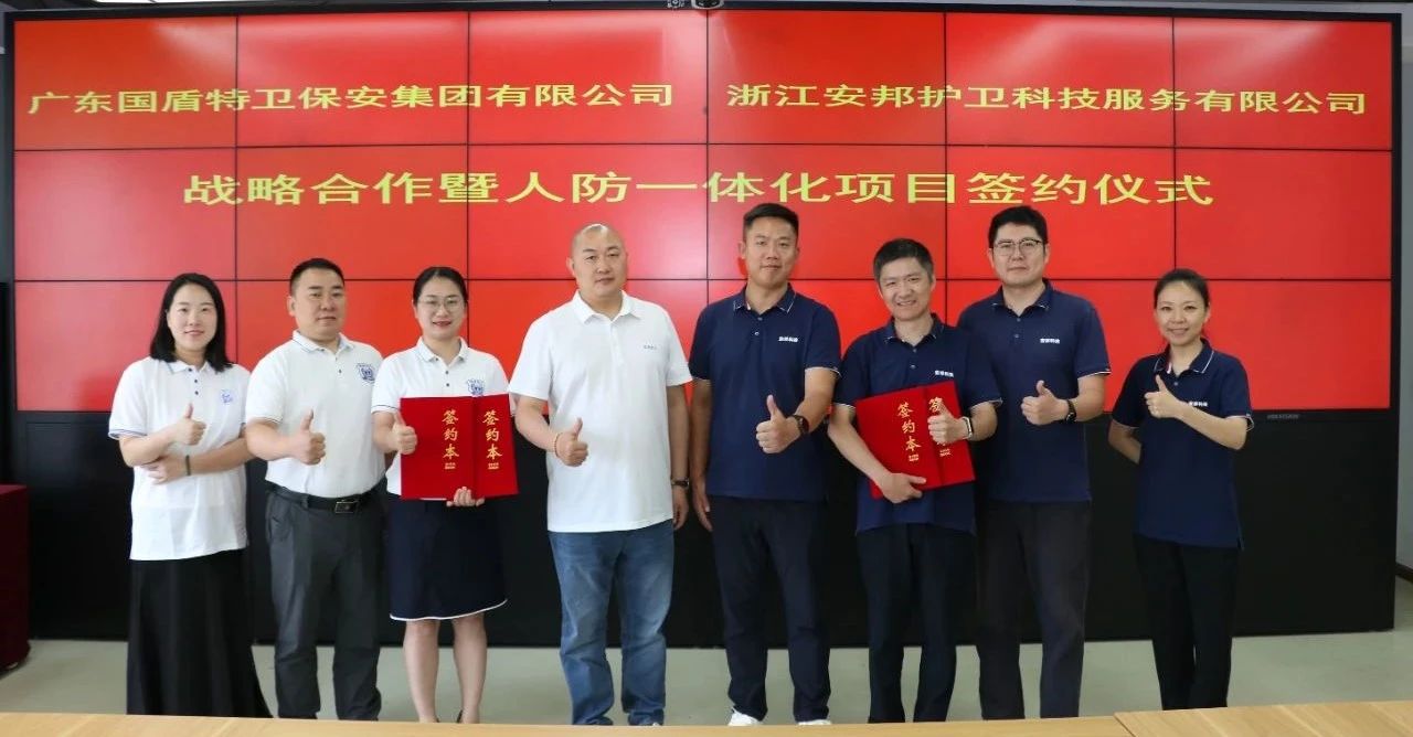 為加速構建全域化安全服務體系,推動保安行業數字化轉型,2025年7月10日上午,廣東國盾特衛保安集團有限公司與浙江安邦護衛科技服務有限公司在杭州正式簽署戰略合作協議及人防一體化項目協議。此次合作是繼今年1月集團黨支部書記、董事長夏學樹率隊赴浙考察后,雙方在科技賦能安保領域邁出的實質性步伐。